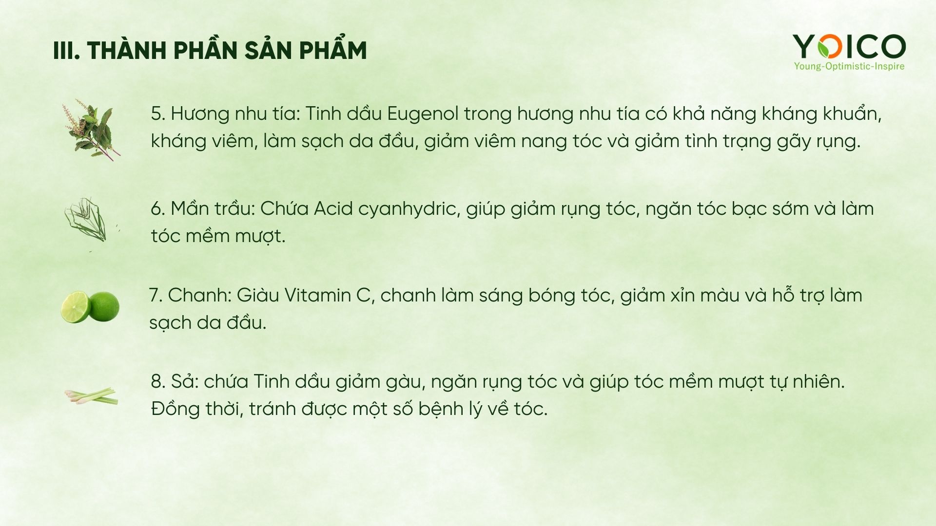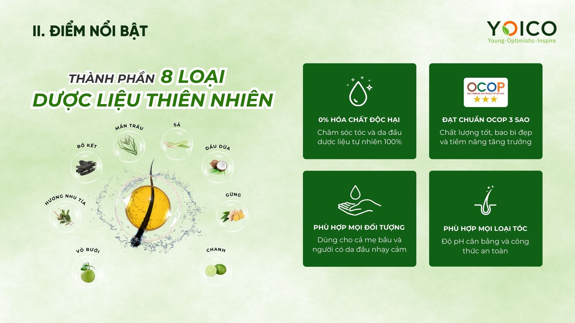 Có. Nhờ thành phần kháng khuẩn như gừng, hương nhu tía, bồ kết và các tinh dầu tự nhiên làm sạch da đầu và giảm ngứa.