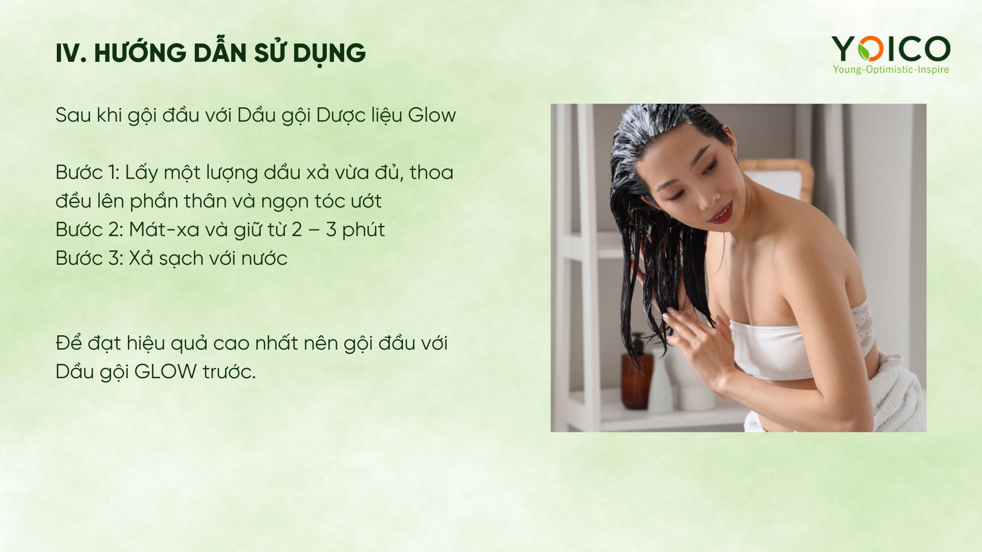 Dầu xả Glow không chứa paraben, sulfate, silicone nên an toàn cho da đầu nhạy cảm, không gây kích ứng.