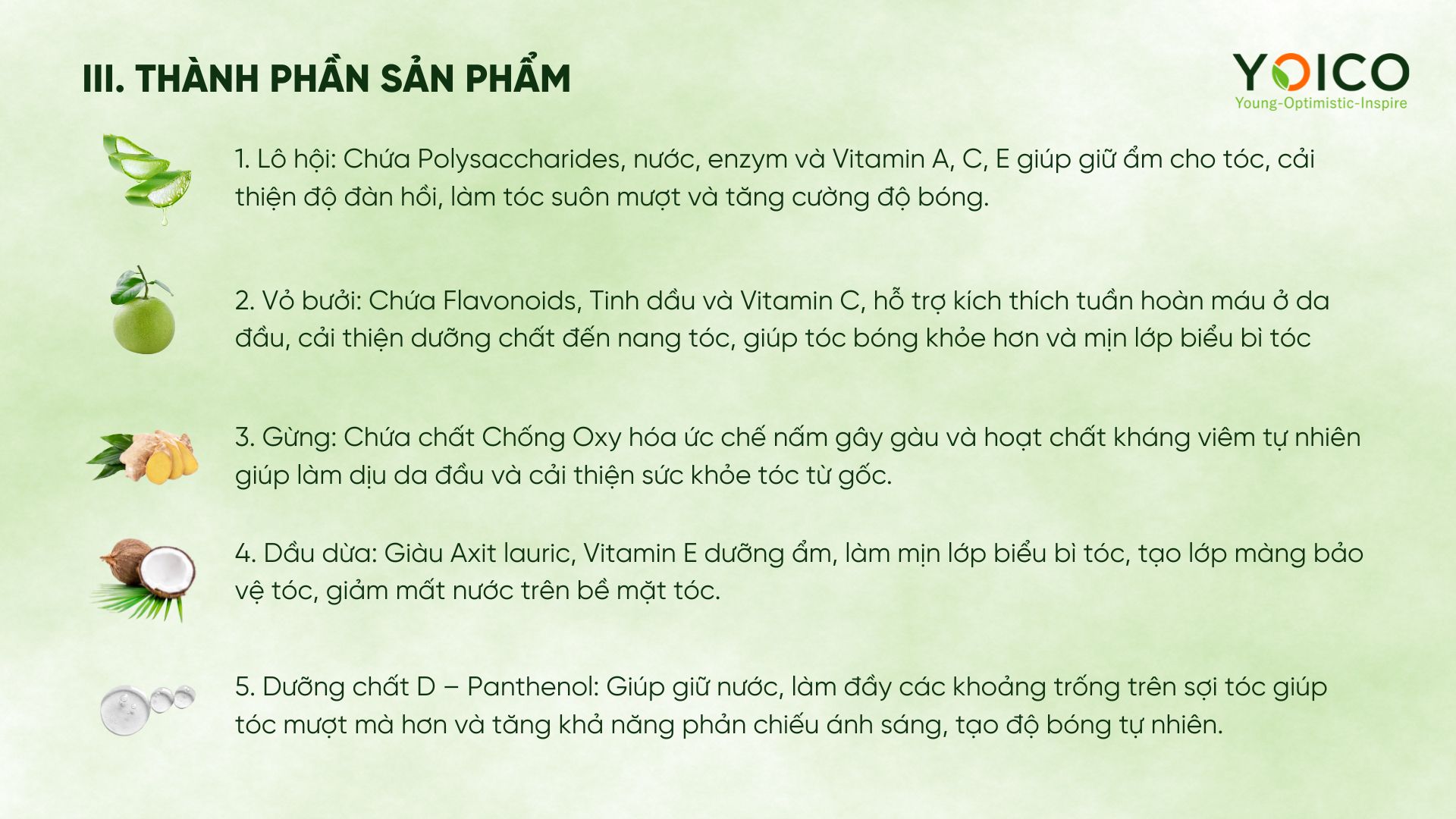 Cung cấp độ ẩm cho tóc giúp tóc óng mượt, làm mịn, suôn mềm, bóng tóc, giảm xơ, gãy rụng, phục hồi tóc hư tổn, bổ sung các dưỡng chất cần thiết giúp tóc sinh trưởng và chắc khỏe.