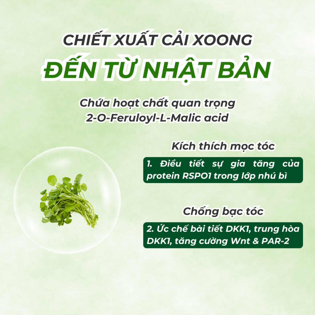 Ngoài các công dụng tương đồng với Lotion Grow, Lotion Gleam còn có công dụng đặc biệt là giảm bạc tóc nhờ chiết xuất Cải xoong Nhật Bản.