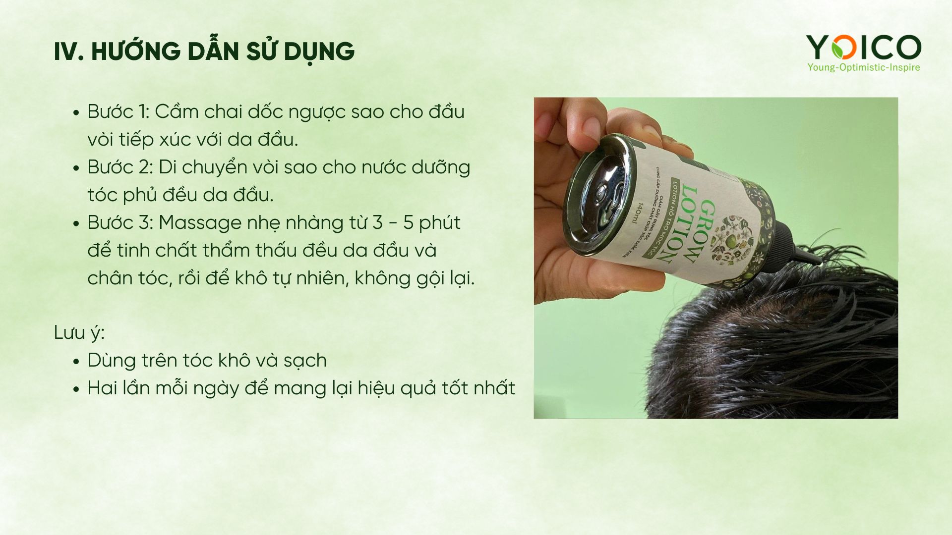 Khuyến cáo: Sản phẩm này không phải là thuốc, không có tác dụng thay thế thuốc chữa trị các bệnh lý về tóc và da đầu.